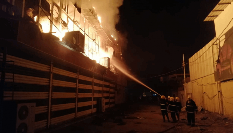 حريق داخل معارض للاثاث في النجف