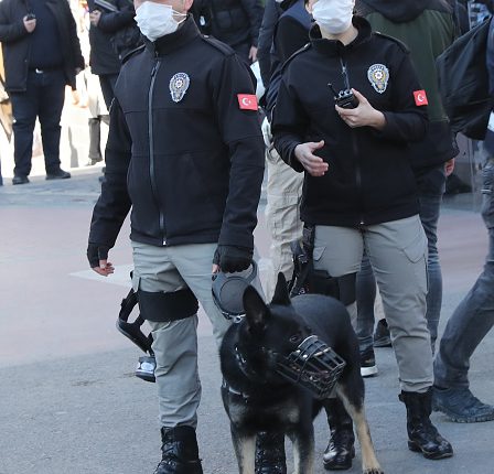 Turkish riot police block a street during a protest against the appointment of Melih Bulu, as the new rector of Istanbul's Bogazici University, on February 05, 2021 in Ankara. - Students protest against the president's decision last month to name Bulu, a ruling Justice and Development Party (AKP) loyalist, to head Istanbul's elite Bogazici University, with many students seeing his appointment as a part of the president's broader push to seize control of various facets of Turks' daily lives while in power for the past 18 years. (Photo by Adem ALTAN / AFP) (Photo by ADEM ALTAN/AFP via Getty Images)