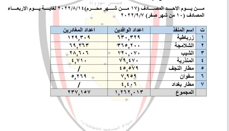 أعلنت هيئة المنافذ الحدودية الخميس، أن توافد الزائرين إلى مدينة كربلاء المقدسة مستمرة من خلال منافذنا للمشاركة في إحياء مراسم أربعينية الإمام الحسين (عليه السلام) بكل سلاسة وإنسيابية عالية من دون أي عائق وتأخير.
