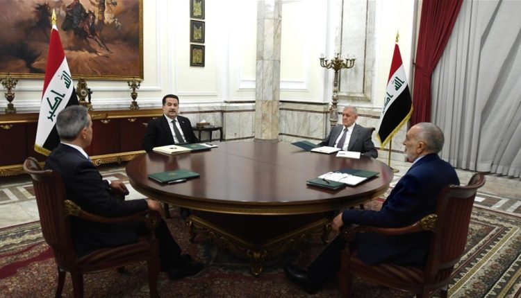 وقال اعلام رئاسة الجمهورية في بيان ان “الرئاسات عقدت اجتماعا في قصر بغداد لبحث التطورات في المنطقة”.