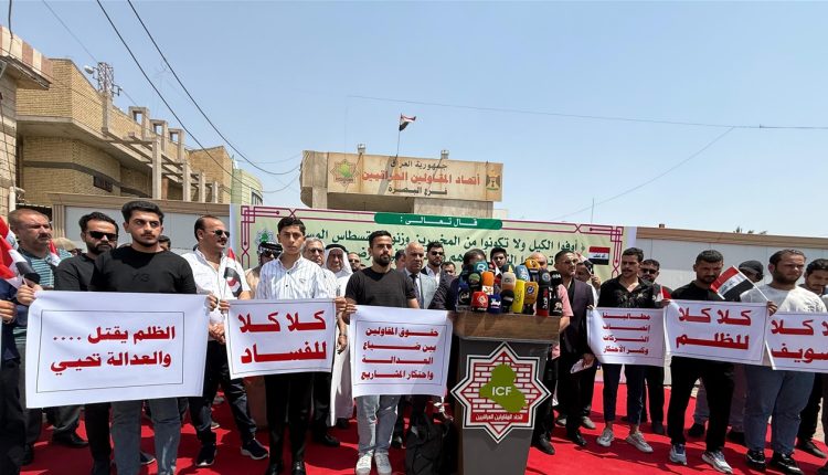 وطالب رئيس اتحاد مقاولي البصرة بـ”كسر الاحتكار وتحقيق العدالة في توزيع المشاريع، والالتزام بتنفيذ قرارات مجلس الوزراء، ووزارة التخطيط، وفتح حوار مباشر وشفاف مع محافظ البصرة لإيجاد حلول عاجلة”.