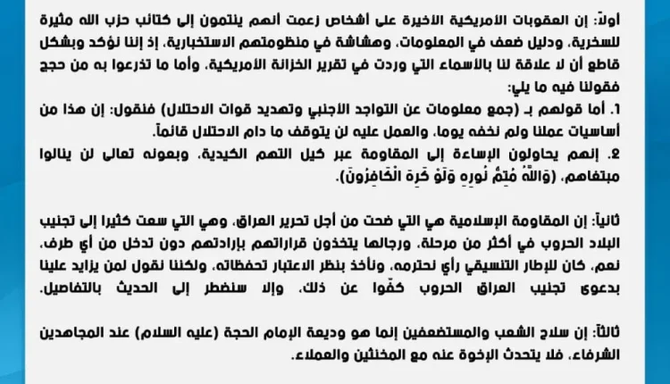 متحدث كتائب حزب الله: العقوبات الأميركية “مثيرة للسخرية” وننفِي أي صلة بالأسماء المذكورة