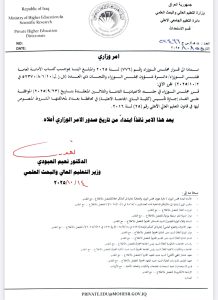 وزير التعليم يصدر أمراً وزارياً بإلغاء إجازة تأسيس كلية أهلية في بغداد