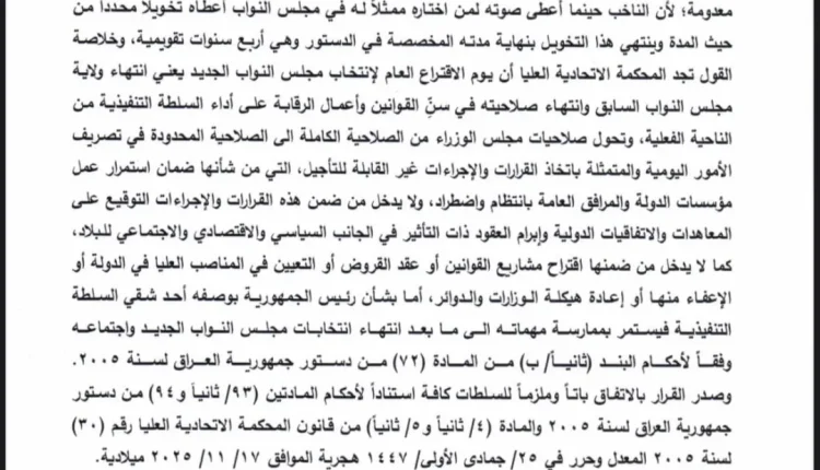 أصدرت المحكمة الاتحادية قراراً يقضي بإنهاء ولاية مجلس النواب وتحويل مجلس الوزراء الحالي إلى “حكومة تصريف أعمال” بصلاحيات محدودة.