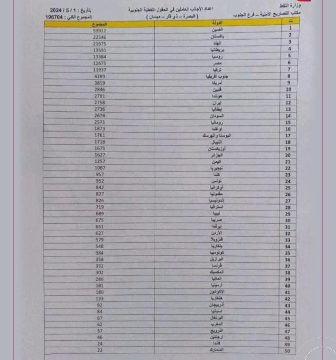 197 ألف عامل أجنبي في حقول الجنوب.. دعوات لإحلال العمالة الوطنية وميسان تشتعل