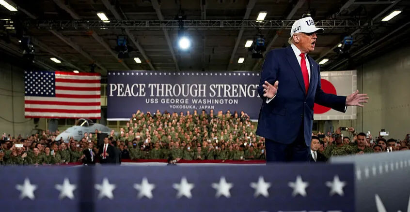 وأشار ترمب، في تصريح من قاعدة يوكوسوكا اليابانية، إلى أن “الولايات المتحدة ستسلم اليابان هذا الأسبوع أول دفعة من الصواريخ المخصصة لمقاتلات إف-35″، مضيفاً: “لن يحلم أي عدو بتهديد البحرية الأميركية ولا توجد قوة بحرية في العالم تقترب من قدراتنا”.