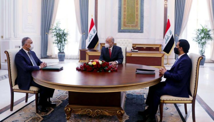اجتمع، في قصر بغداد مساء اليوم الأحد ١٩ تموز ٢٠٢٠، السادة رئيس الجمهورية الدكتور برهم صالح، ورئيس مجلس الوزراء مصطفى الكاظمي، ورئيس مجلس النواب محمد الحلبوسي.