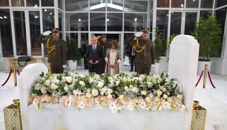وأضاف البيان، أن “الرئيس برفقة السيدة الأولى شاناز إبراهيم أحمد، زارا ضريح رئيس الجمهورية الأسبق جلال طالباني ووضعا اكليلاً من الزهور على قبره، كما زار كلاهما قبر الأديب والروائي المعروف إبراهيم أحمد ووضعا اكليلًا من الزهور عند القبر”.