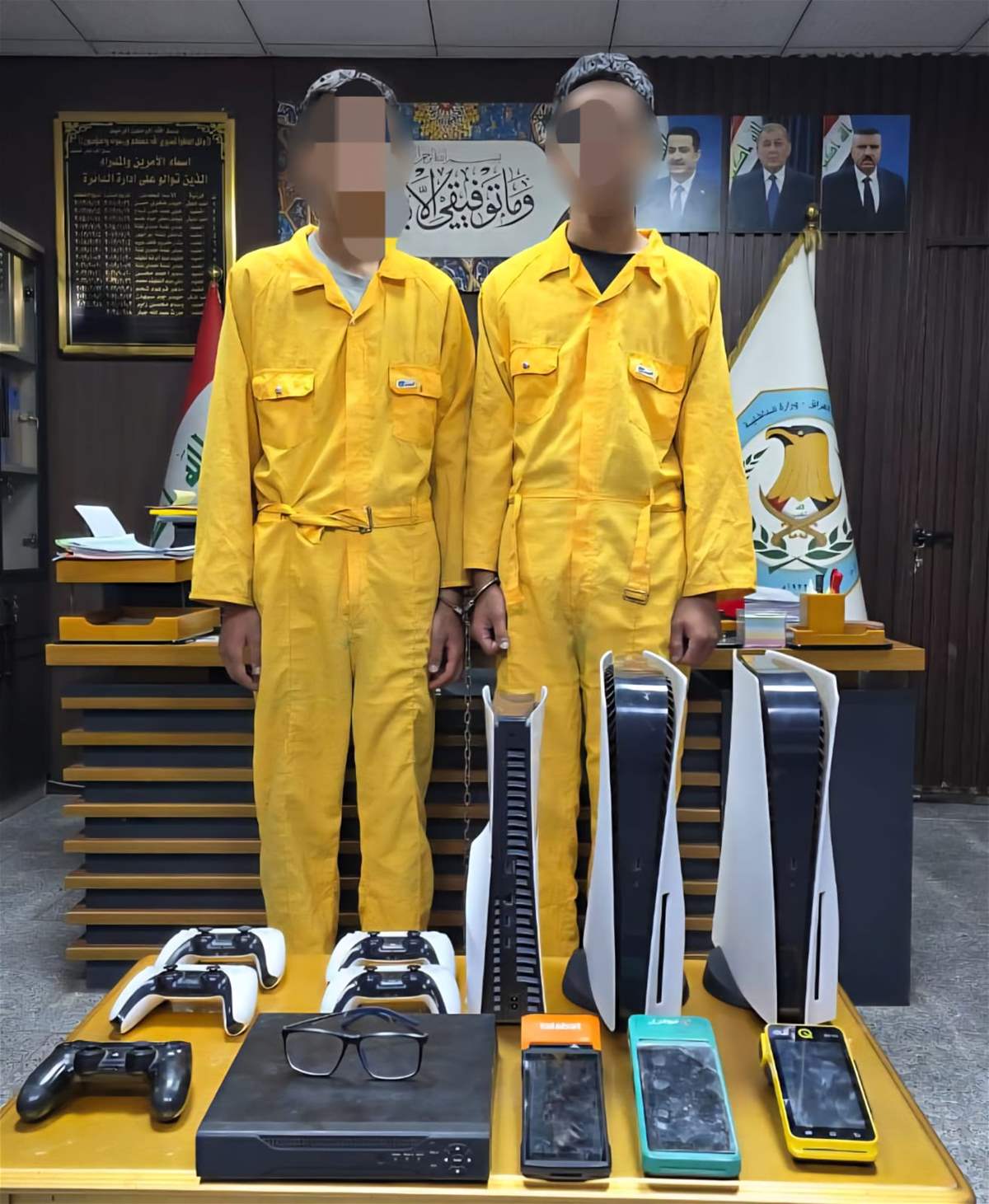 وأضافت “تم إلقاء القبض عليهما وضبط المسروقات، التي شملت أجهزة إلكترونية، وأجهزة دفع مسبق، بالإضافة إلى الدراجة المستخدمة في الحوادث، والتي تبيّن أنها مسروقة ومستخدمة أيضاً في حادث سرقة آخر ضمن منطقة السعدون”.
