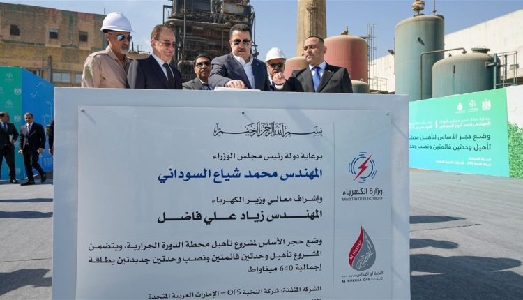 أطلق رئيس مجلس الوزراء محمد شياع السوداني، اليوم الاثنين، العمل التنفيذي في مشروع تأهيل وحدتين حراريتين قائمتين بطاقة 320 ميكاواط (2*160)، ونصب وحدتين جديدتين بطاقة 320 ميكاواط (2*160) في محطة كهرباء الدورة الحرارية في العاصمة بغداد.