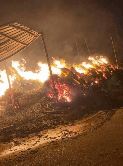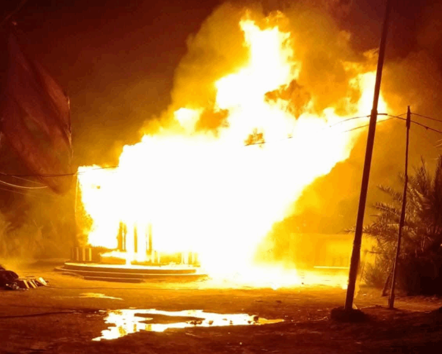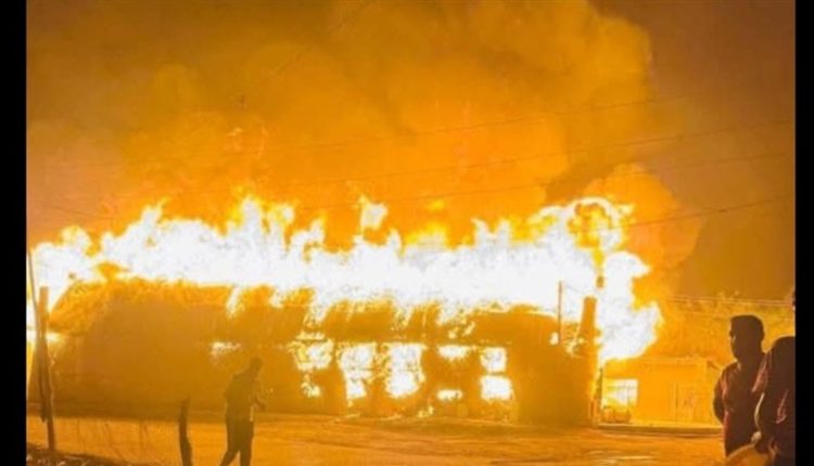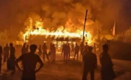 مشهد سريالي ليلي.. نار هائلة تلتهم مضيفا من القصب في احدى قرى ذي قار (صور)