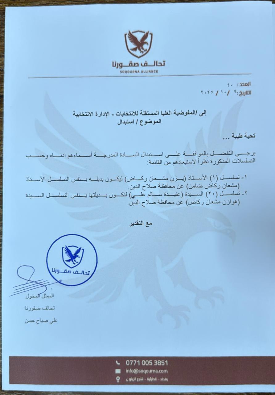 ويأتي ذلك في وقت تتواصل فيه التحضيرات لانتخابات مجلس النواب العراقي المقررة في 11 تشرين الثاني/نوفمبر المقبل، بمشاركة أكثر من 7,700 مرشح يتنافسون على 329 مقعداً، وسط أجواء انتخابية توصف بأنها أكثر تنافسية من الدورات السابقة.