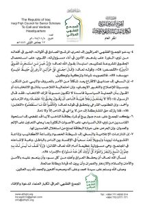 التأكيد على وحدة الصف الوطني ونبذ الدعوات التي تثير الانقسام أو تضعف الثقة بالمؤسسات المنتخبة.