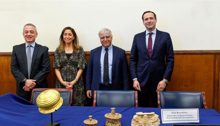 وتابع: “هذا وقد سُلم السفير فريد ياسين قطعتين أثريتين إستردتا من مايكل شتاينهاردت (Michael Steinhardt) وثلاثة قطع أخرى في حوزتهم وجاري التحقيق بشأنها. وتجدر الإشارةُ إلى أن القطع المستردّة تُقَدَّرُ مجتمعة بمئات الآلاف بالدولار الأمريكي، ويعود الفضلُ في استرداد القطع الاثرية المسروقة إلى الجهود التي بذلتها وحدة الإتجار بالآثار التابعة لمكتب المدعي العام في مانهاتن”.