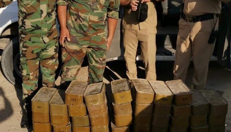وأضافت أنه “بعد اجراء عملية التفتيش اليدوي تم العثور على اعتدة مختلفة الانواع عبارة عن (46) حاوية عتاد مختلفة تتضمن 13200 اطلاقة بي كي سي و11200 اطلاقة كلاشنكوف وكانت مخبئة اسفل العجلة”.